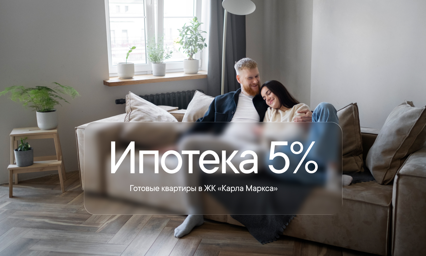 В жилом комплексе «Карла Маркса» запущено специальное ипотечное предложение для покупателей готовых квартир — ставка 5% на первые 15 месяцев по кредиту Сбербанка.